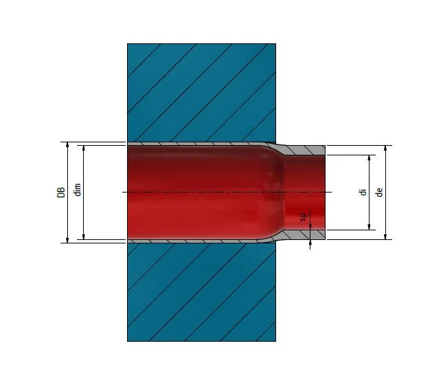 Metallische Anlage des Rohrs in der Rohrbodenbohrung